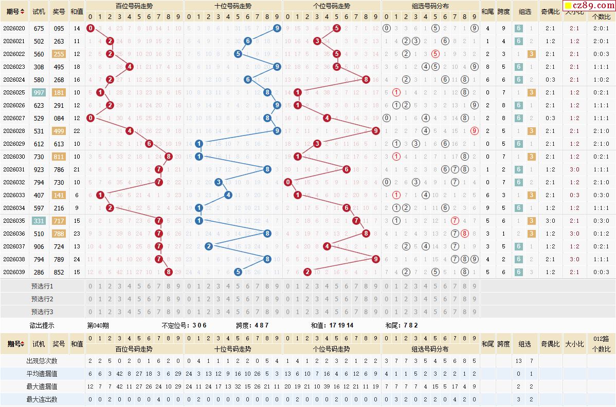 体彩P32026040期 金手指直选定位推荐