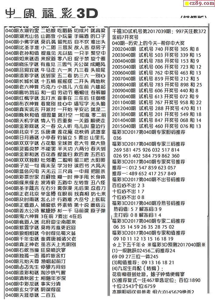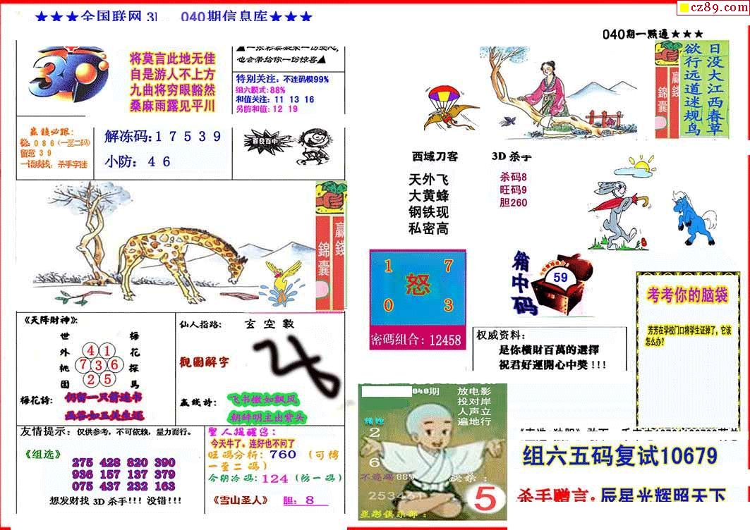 牛彩版3D字谜彩报图26年040期打印版