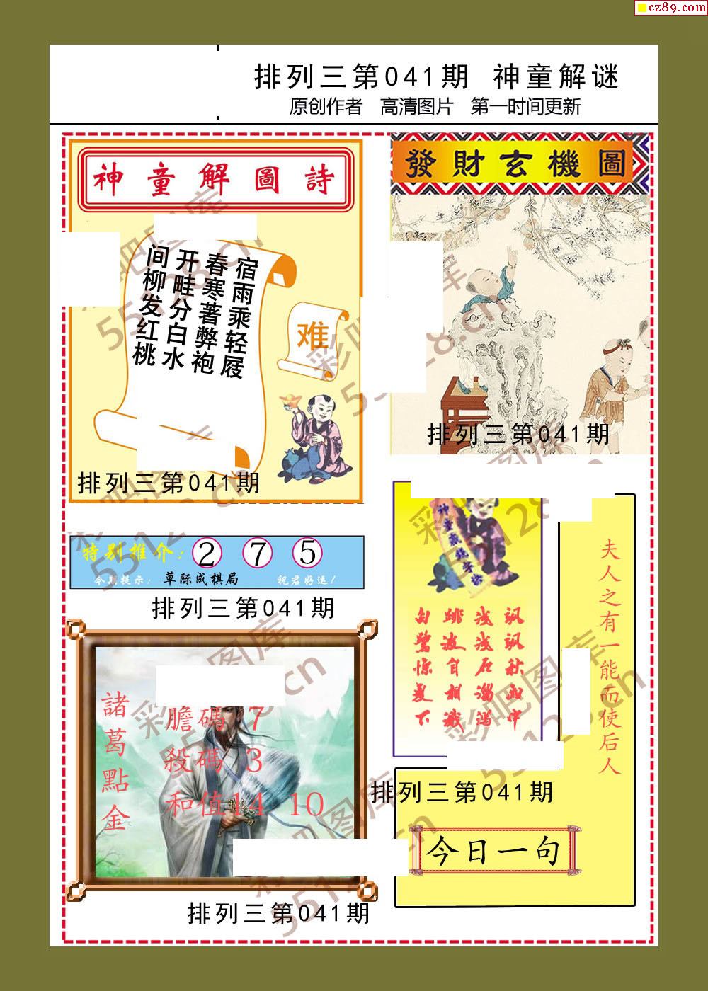 2026年041期牛彩网体彩P3画迷图谜汇总分享