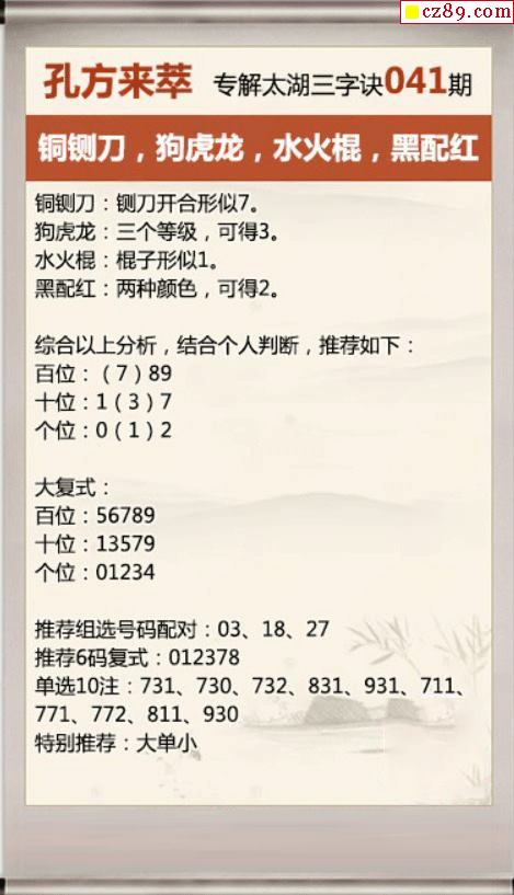 26年041期牛彩版解太湖钓叟三字诀今日汇总