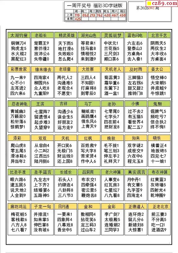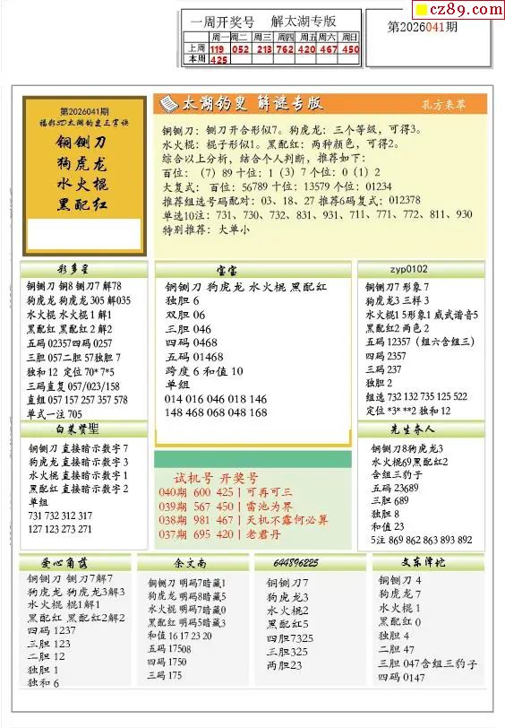 2026041期解太湖3d字图迷汇总报