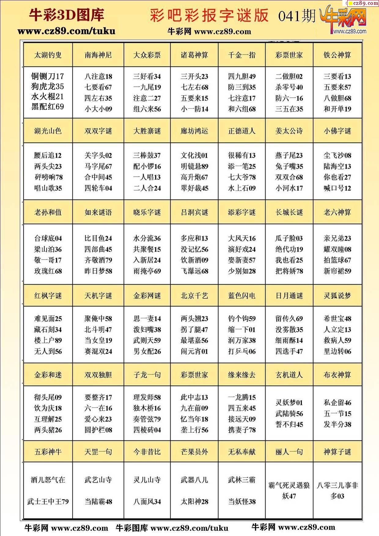 牛彩版3D字谜彩报图26年041期打印版