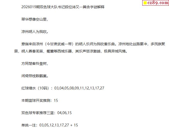 26年福彩双色球019期 大队书记段位诗另一篇