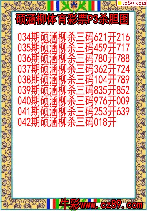2026年042期牛彩网体彩P3画迷图谜汇总分享