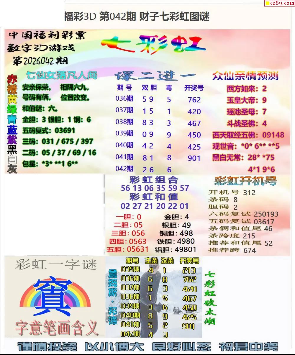 福彩3D2026042期牛彩图谜预测汇总