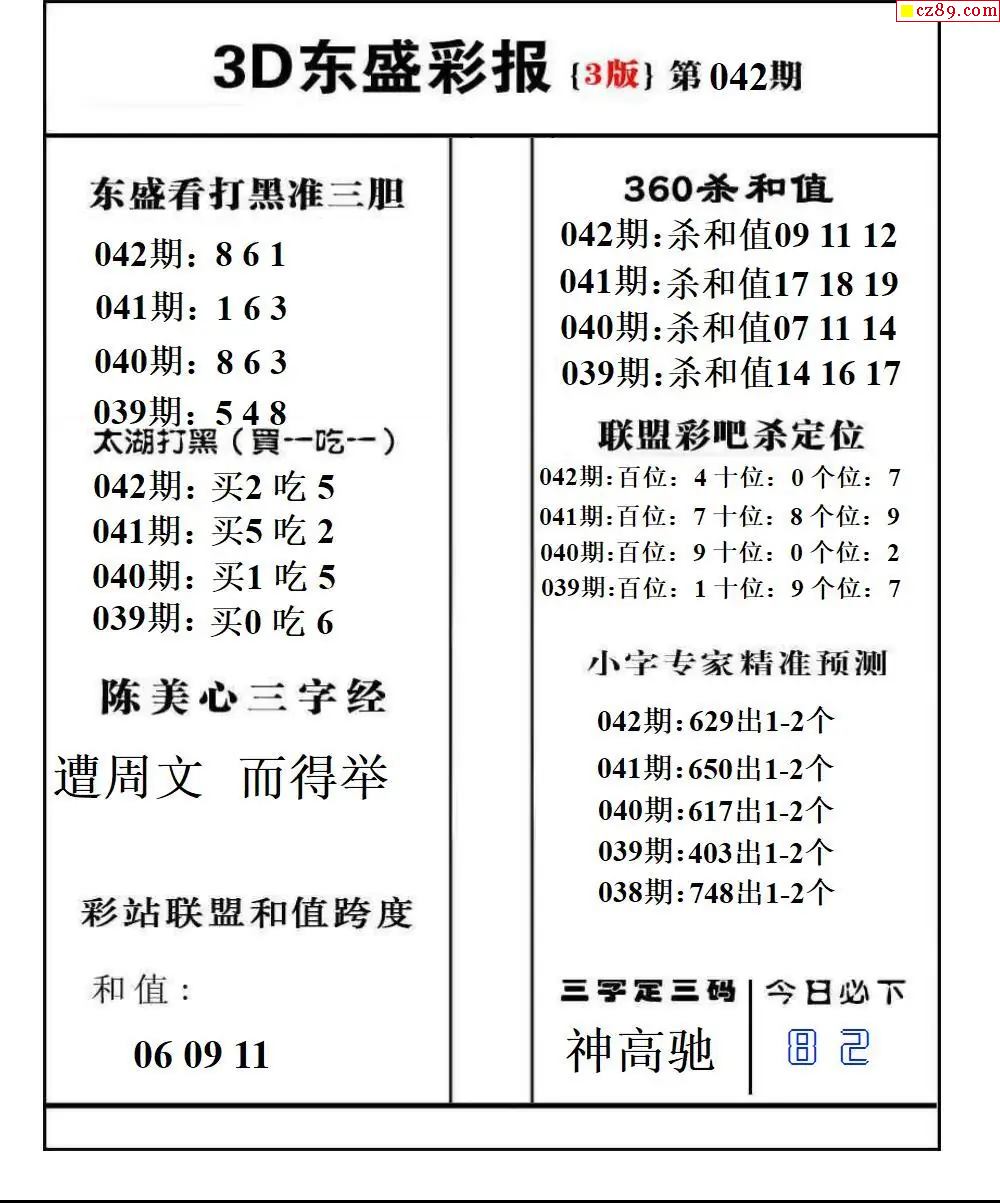 牛彩版3D预测彩报图26年042期打印版