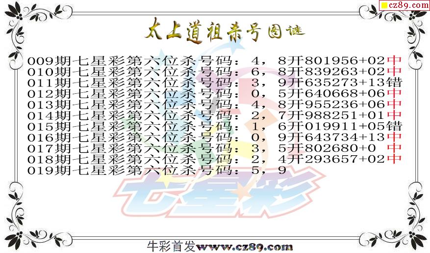 七星彩2026019期太上道祖杀号图谜 10中8