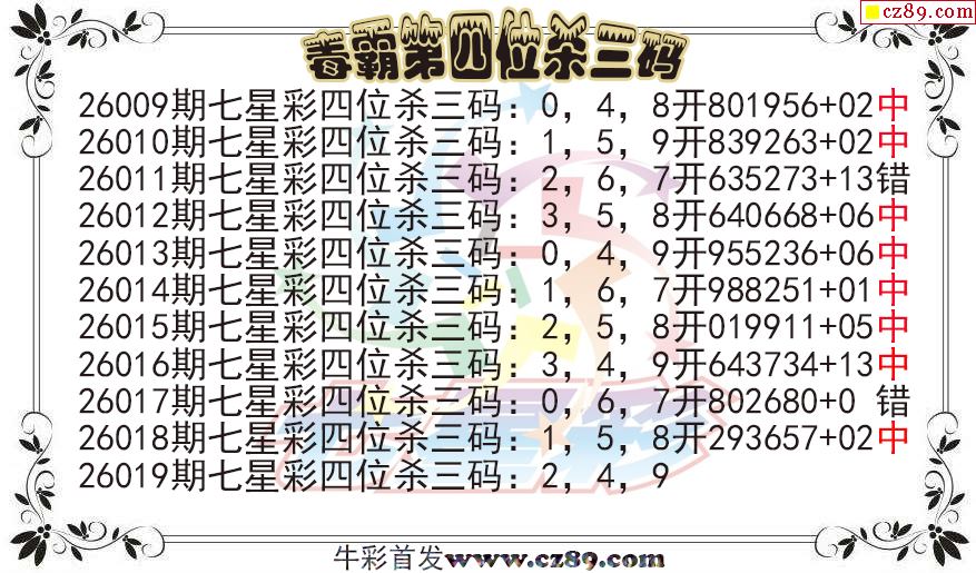 七星彩2026019期毒霸第四位杀三码图迷 10中8
