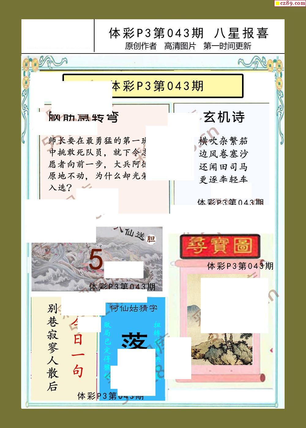 八星报喜043期体彩p3图谜