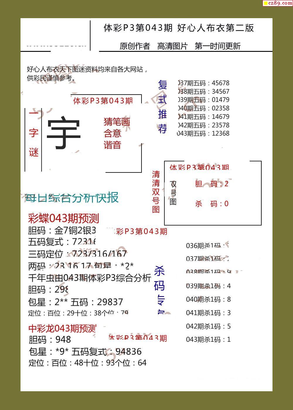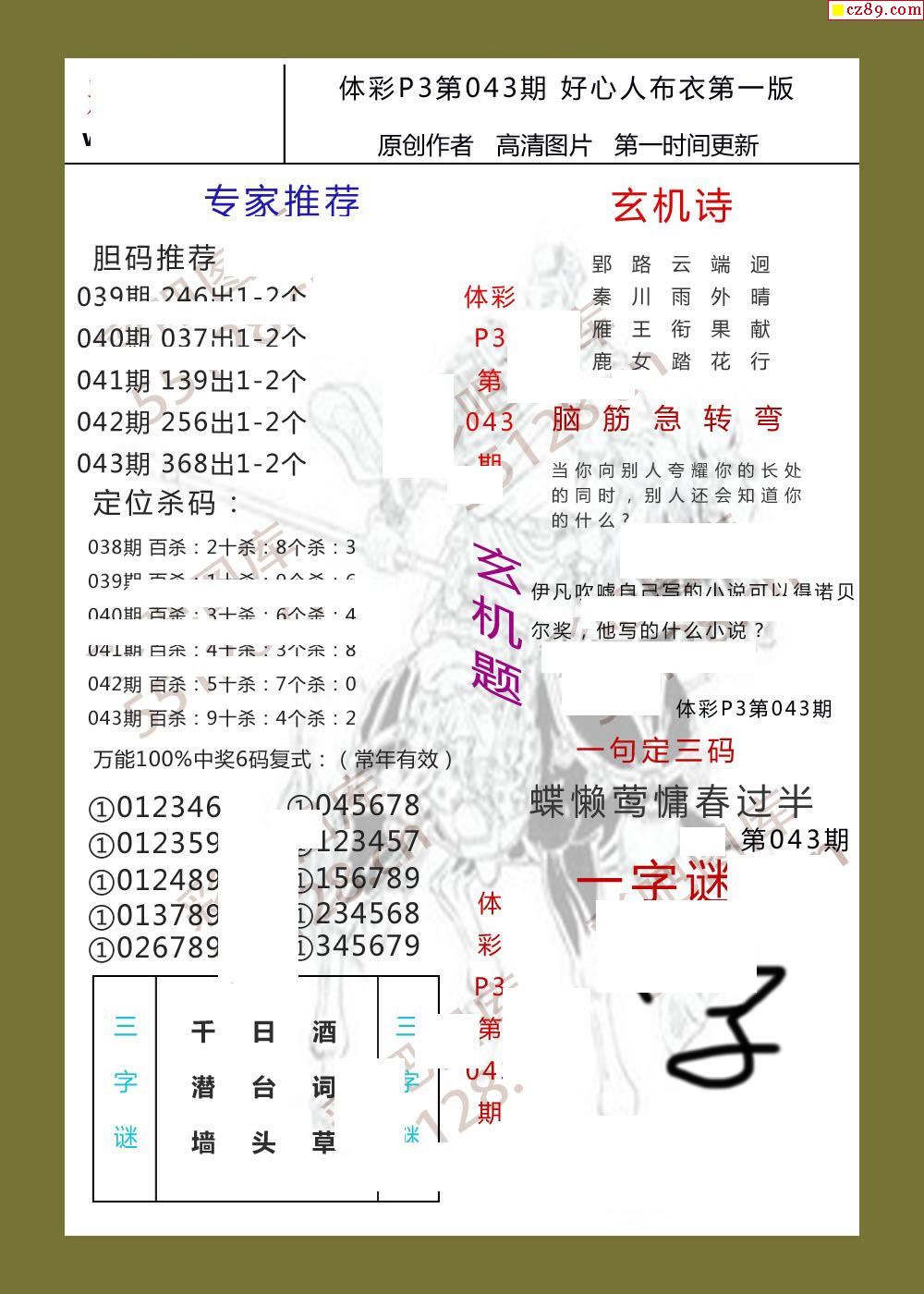 精华布衣彩报043期体彩p3图谜