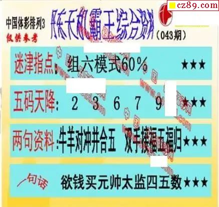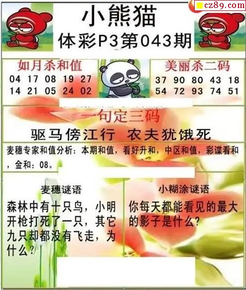 2026年043期牛彩网体彩P3画迷图谜汇总分享
