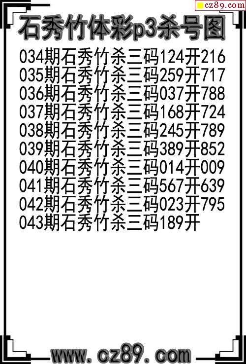 26年043期石秀竹体彩p3杀号图