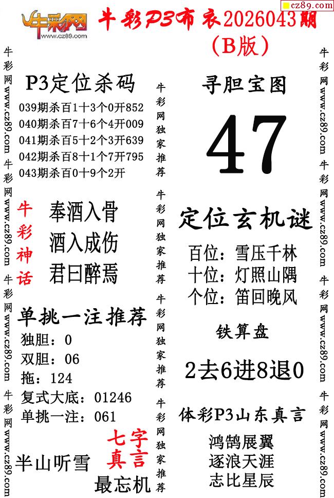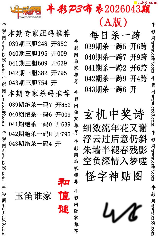 牛彩P3布衣26年043期AB版图谜(精华版)