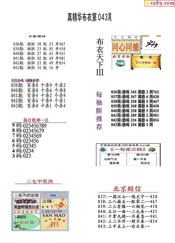 2026043期3D图谜汇总(七)