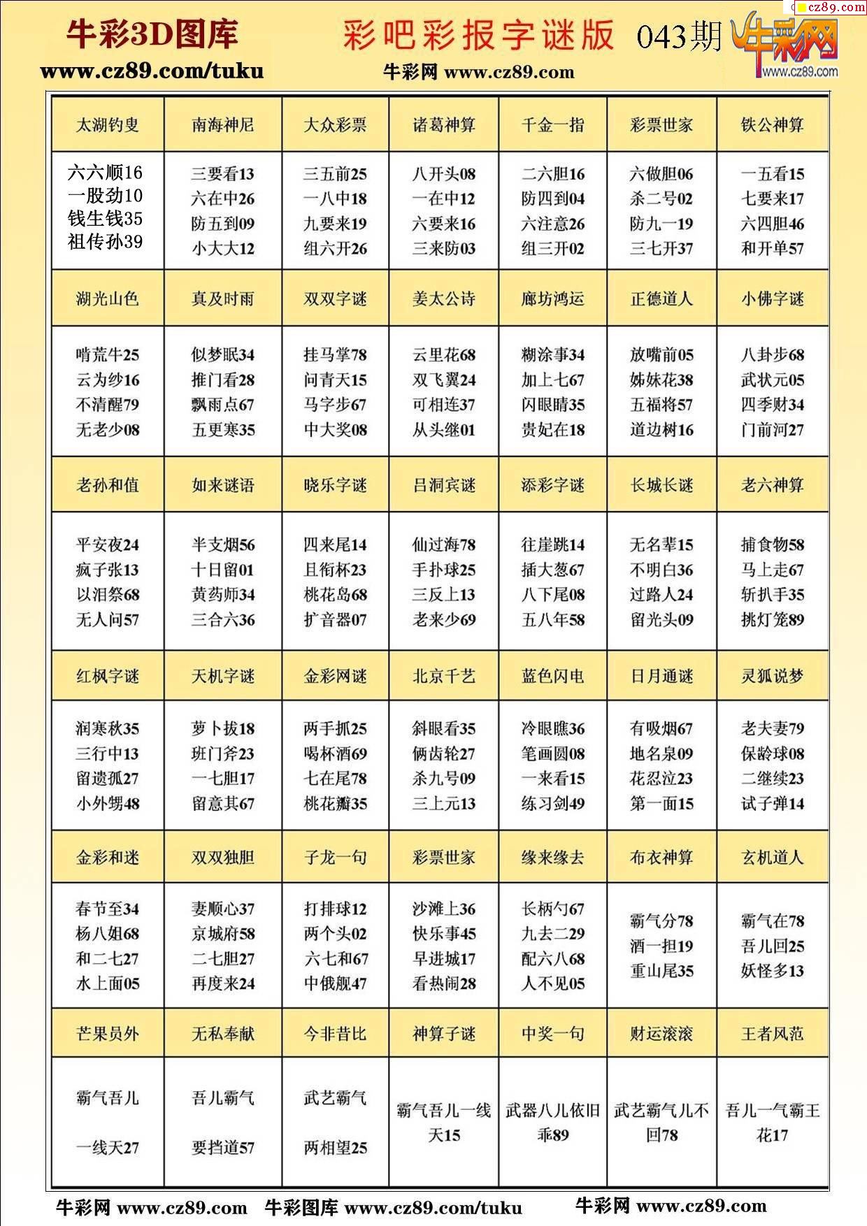 牛彩版3D字谜彩报图26年043期打印版