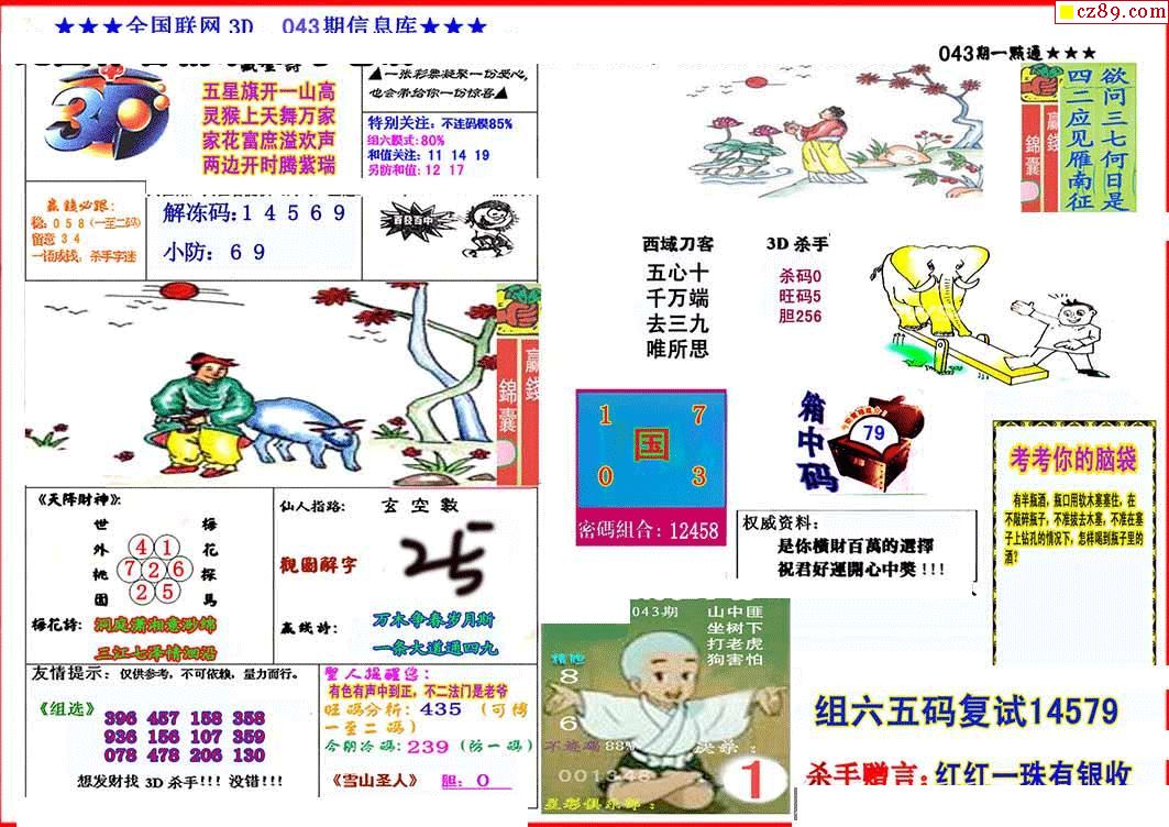杀手+鑫马快报+字迷汇总26年043期3d图谜