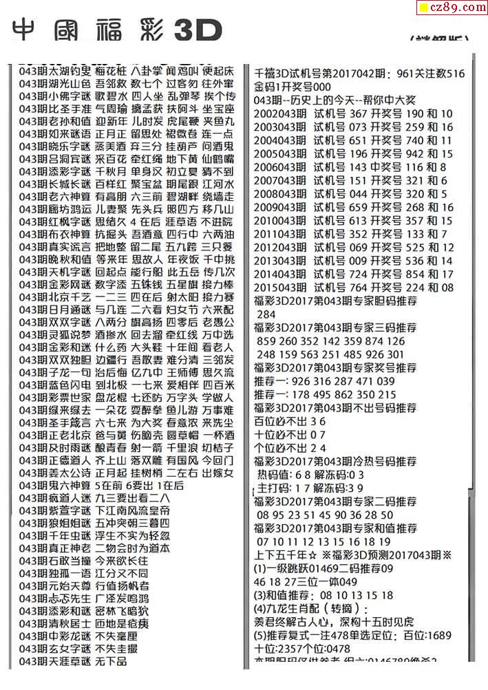 牛彩版3D字谜彩报图26年043期打印版