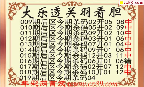 大乐透2026019期关羽后区杀号图谜 10中9