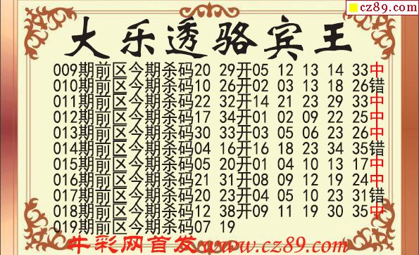 大乐透019期牛彩特邀专家前区后区杀号定胆图表
