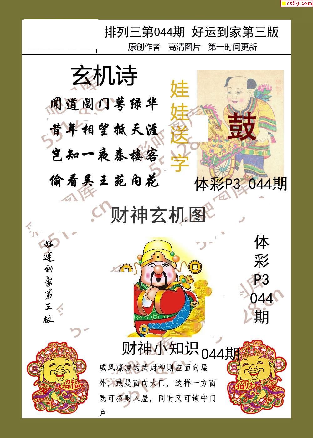 2026年044期牛彩网体彩P3画迷图谜汇总分享