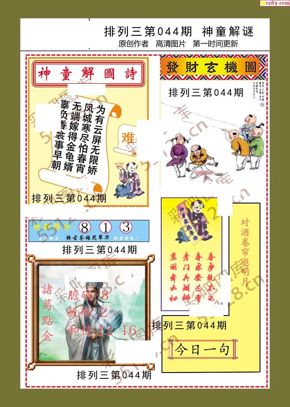 牛彩P3布衣26年044期AB版图谜(精华版)