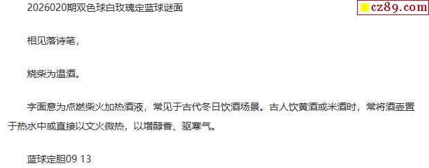 26年福彩双色球020期 白玫瑰定蓝球字谜
