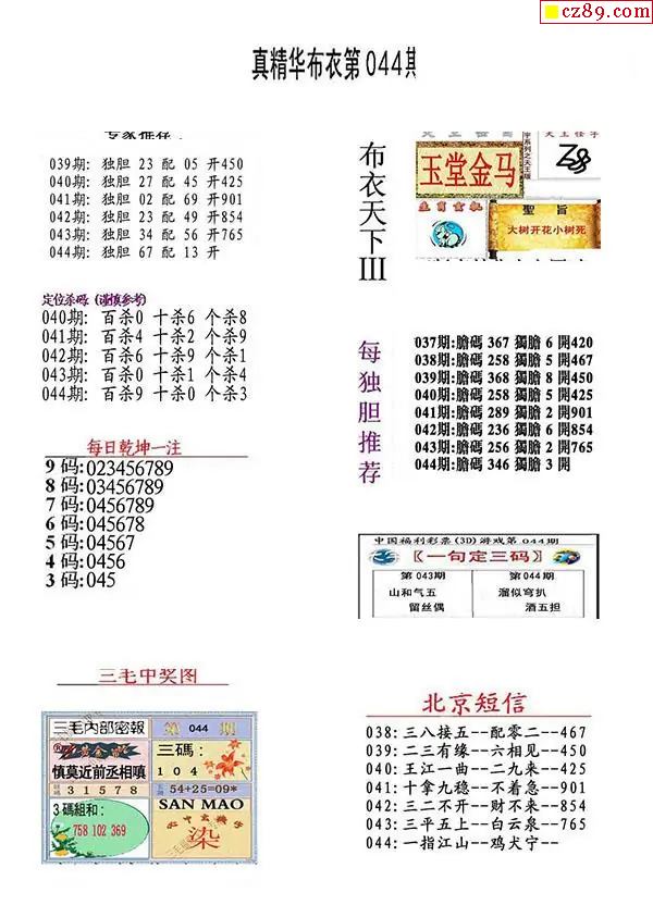 2026044期3D图谜汇总(七)