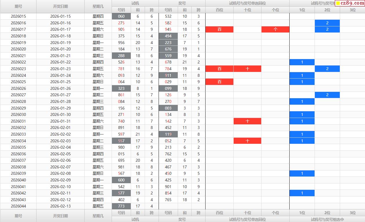 26年044期铁人铁胆3d试机号后分析