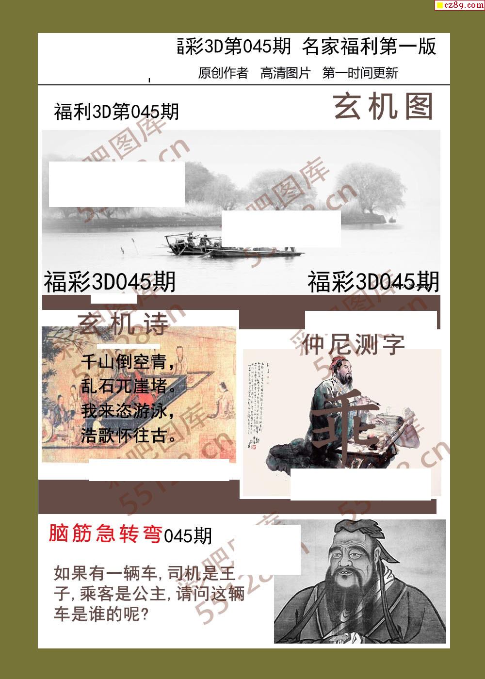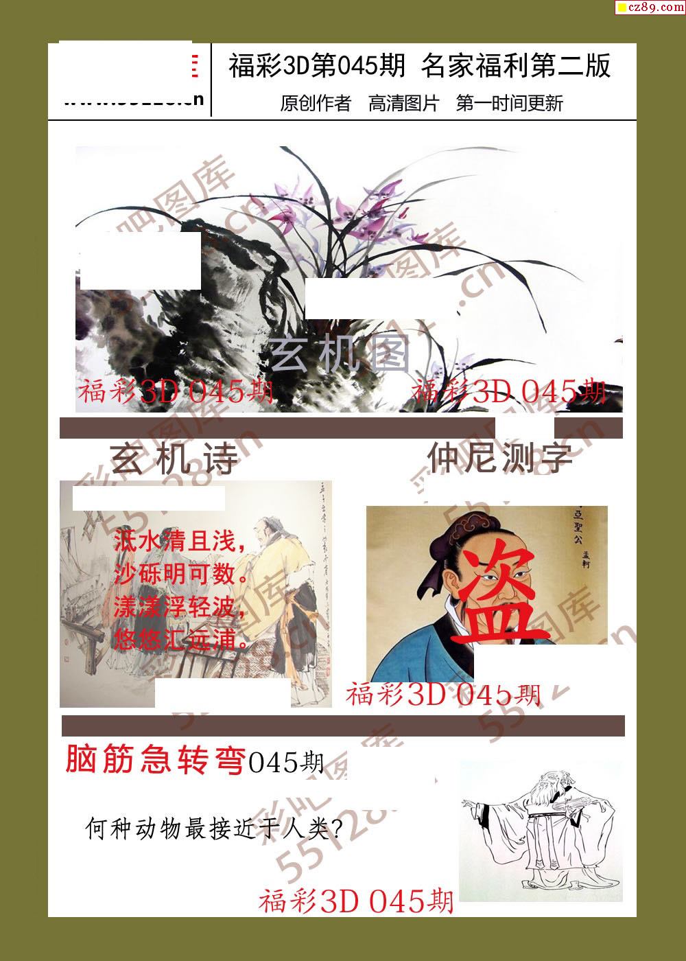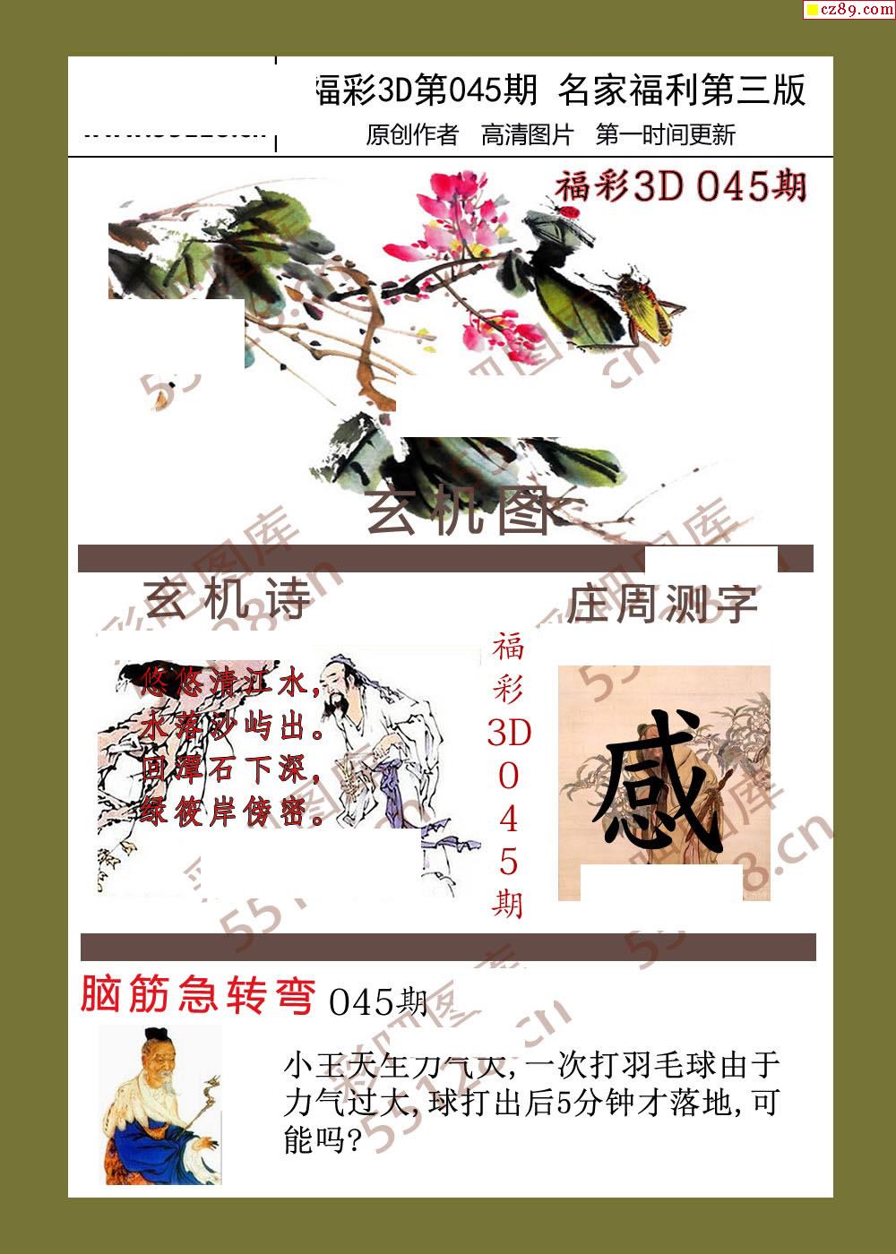 福彩名家福利彩票3d26年045期图谜