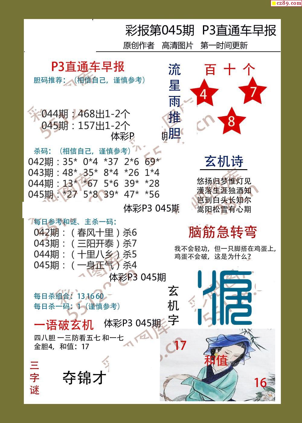 2026年045期牛彩网体彩P3画迷图谜汇总分享