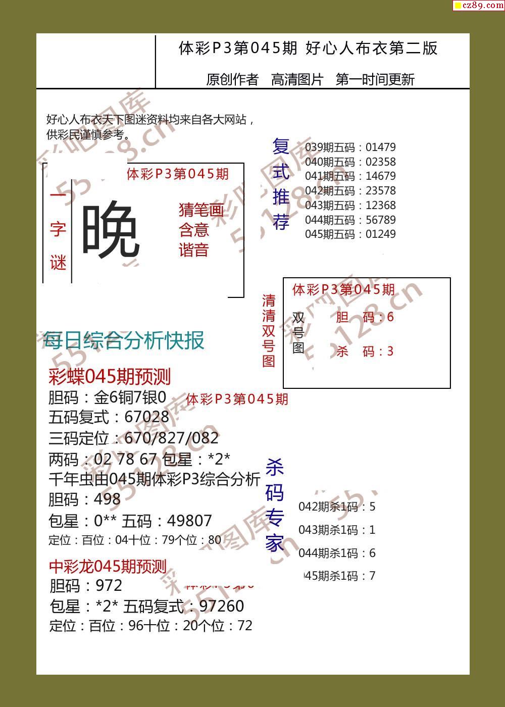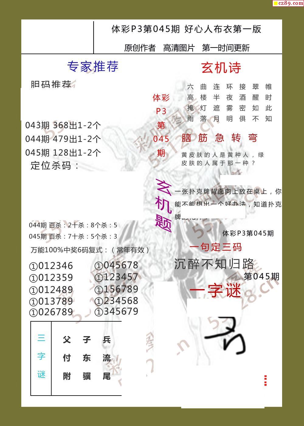 好心人布衣AB版045期体彩p3图谜