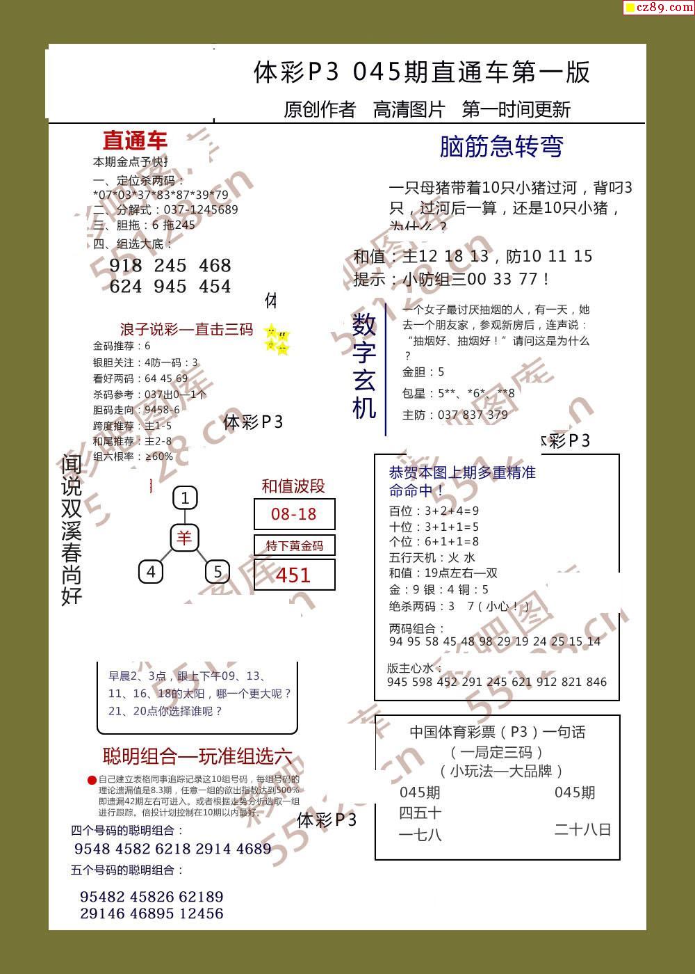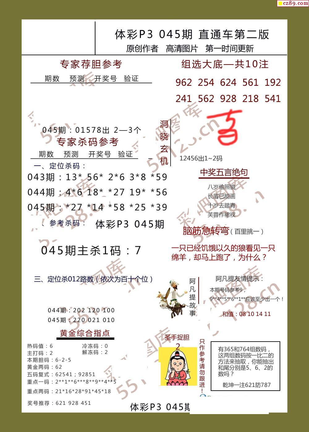 2026年045期牛彩网体彩P3画迷图谜汇总分享