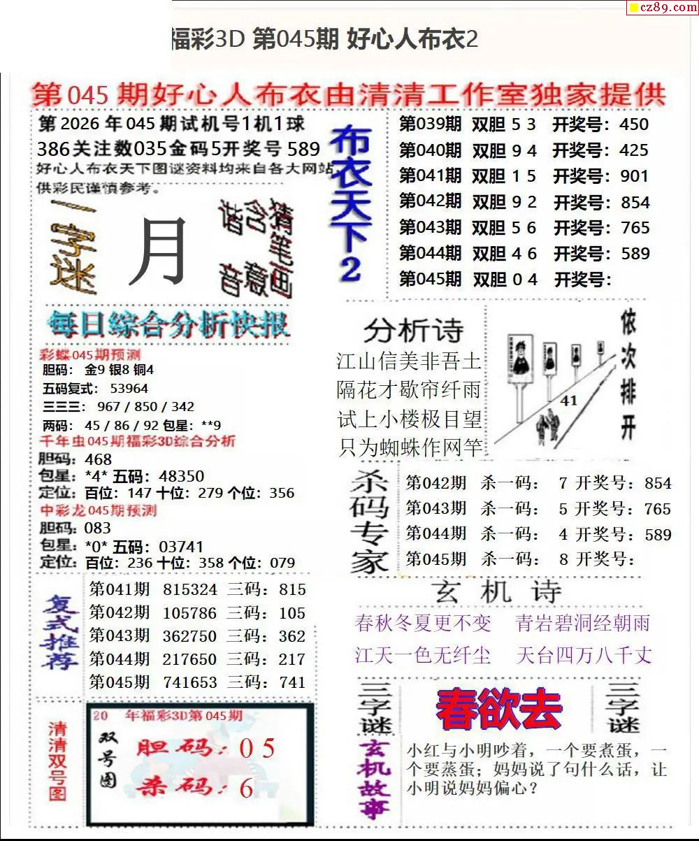 2026045期3d字谜图谜总汇