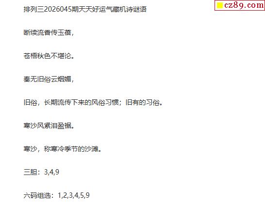 26年045期彩金宝排列三四字解谜