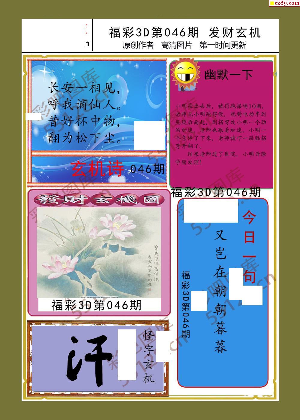 发财玄机26年046期福彩3d画谜