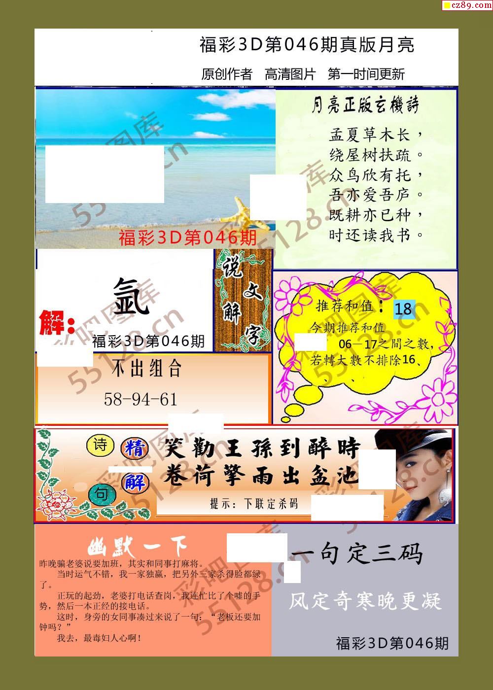 月亮26年046期福彩3d玄机图谜