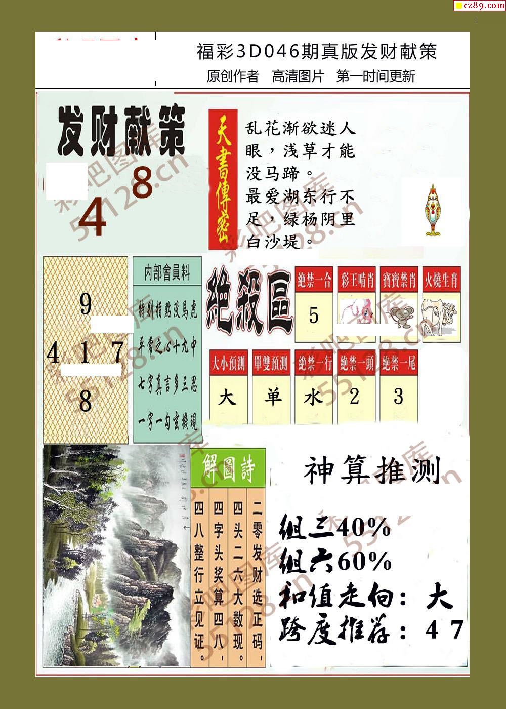 发财献策26年046期福彩3d字画报