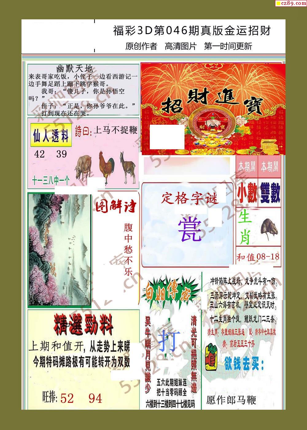 26年046期福彩3d金运招财画迷