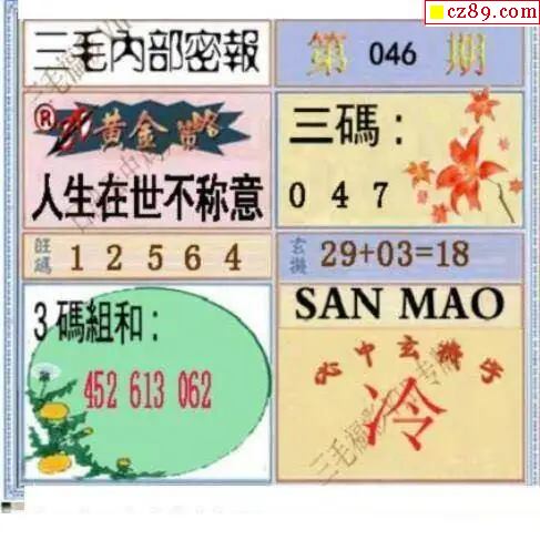 三毛图2026046期3d图谜