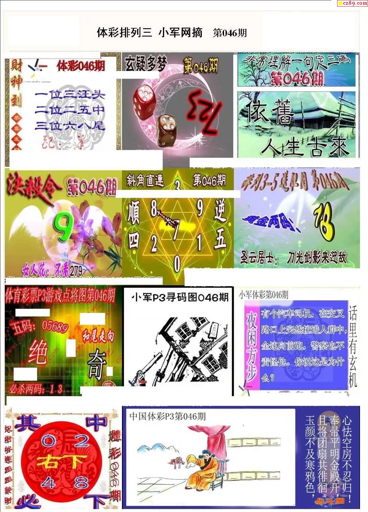 2026年046期牛彩网体彩P3画迷图谜汇总分享