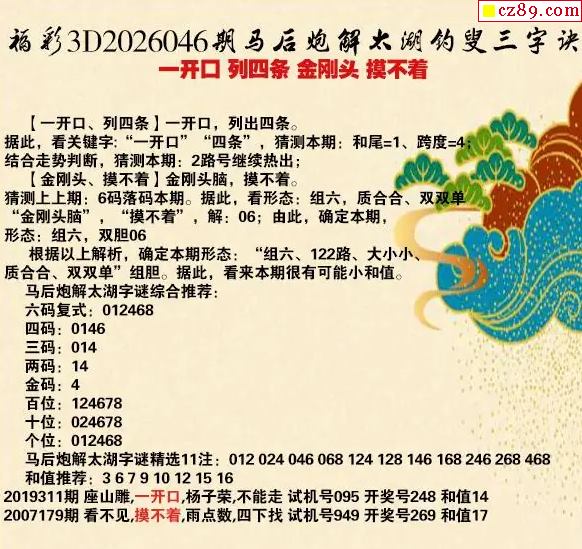 26年046期东山省3d太湖三字诀