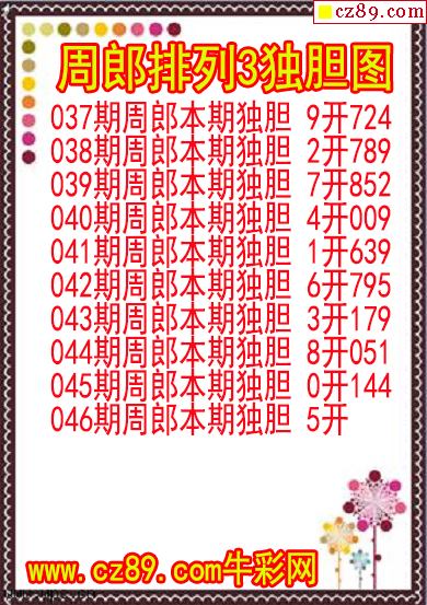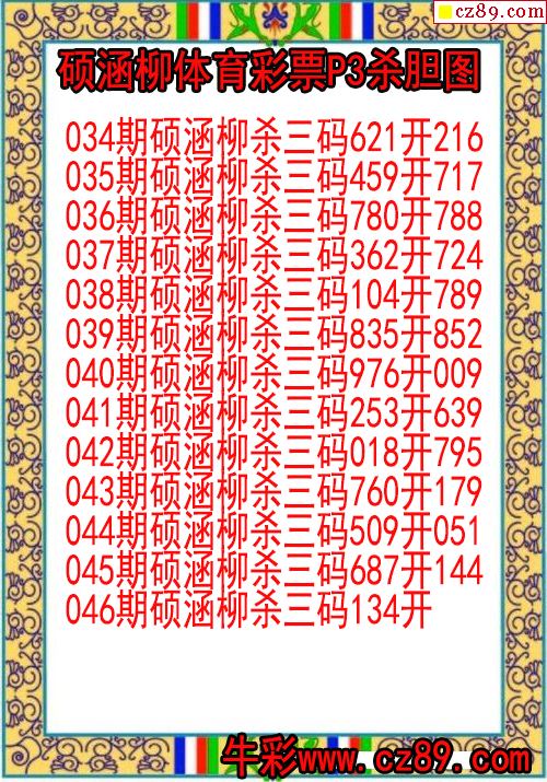 2026年046期牛彩网体彩P3画迷图谜汇总分享