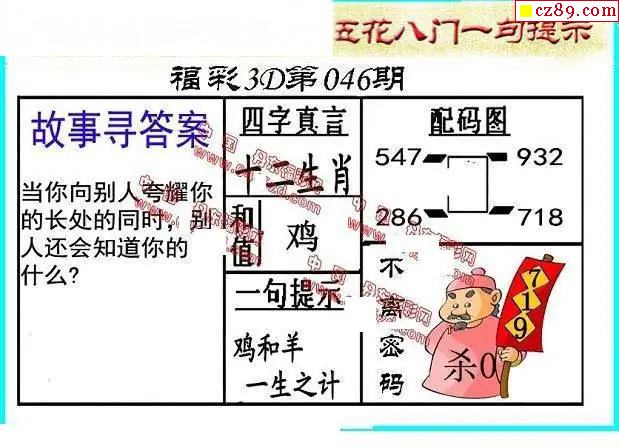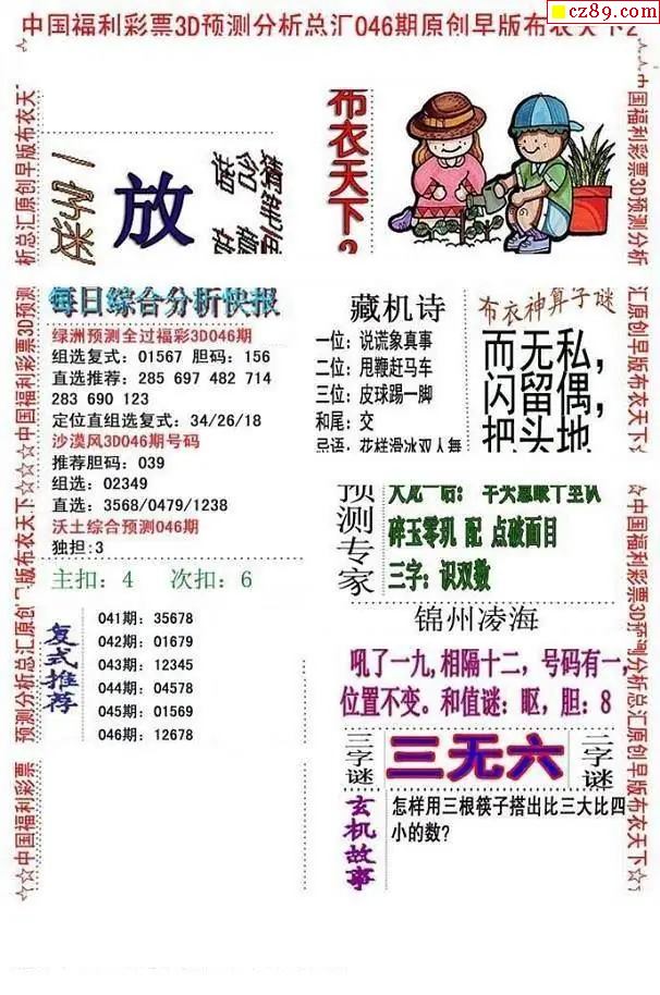 老夫子布衣2026046期3d图谜