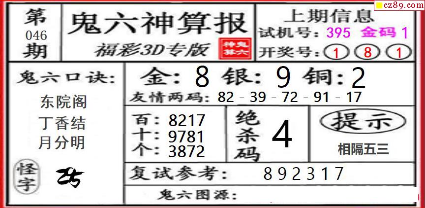 2026046期3D图谜汇总(二)