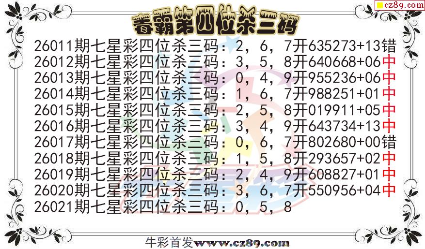 七星彩2026021期毒霸第四位杀三码图迷 10中8