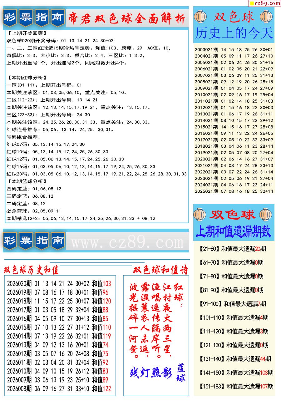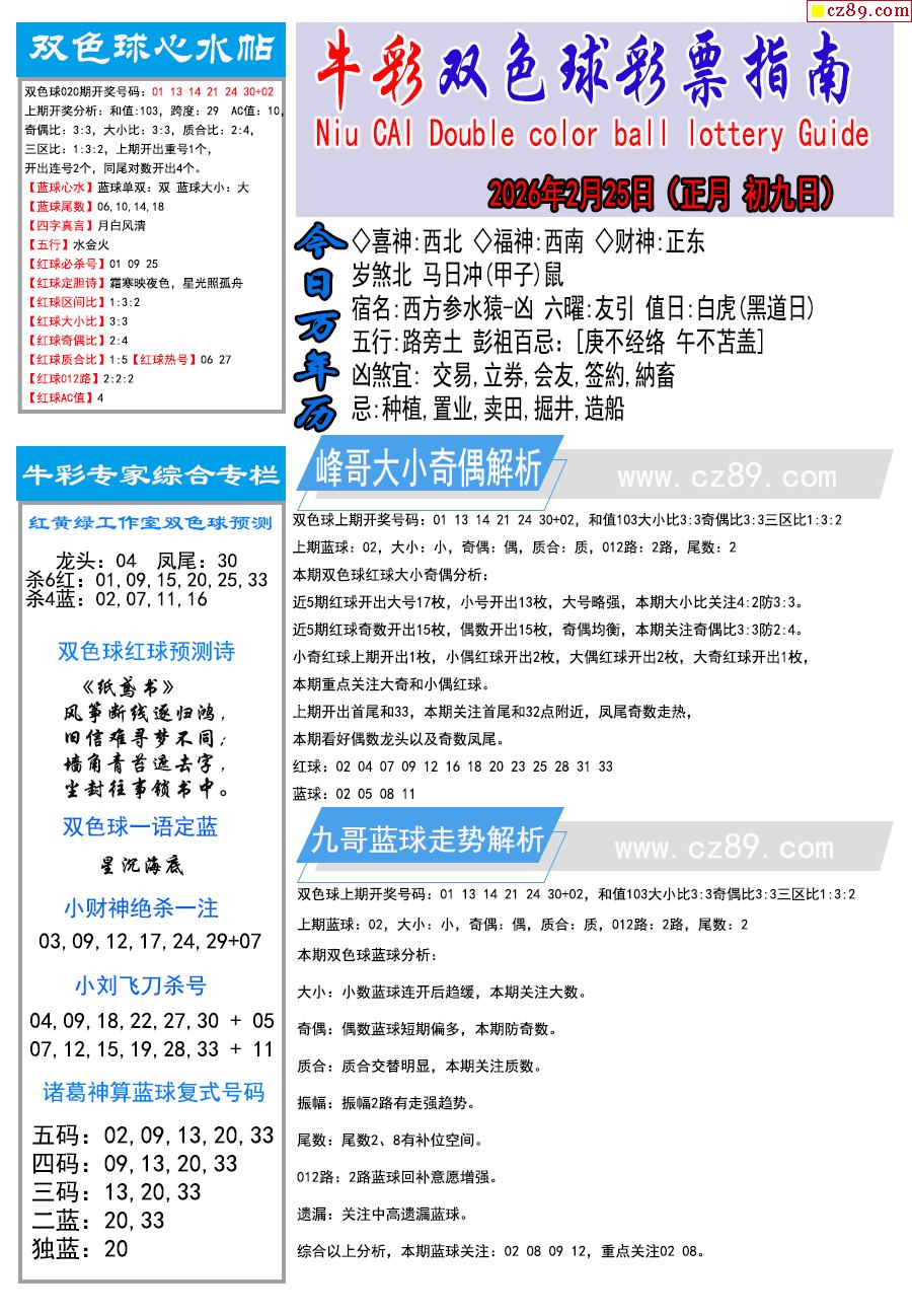 26年021期双色球彩票指南【牛彩版】