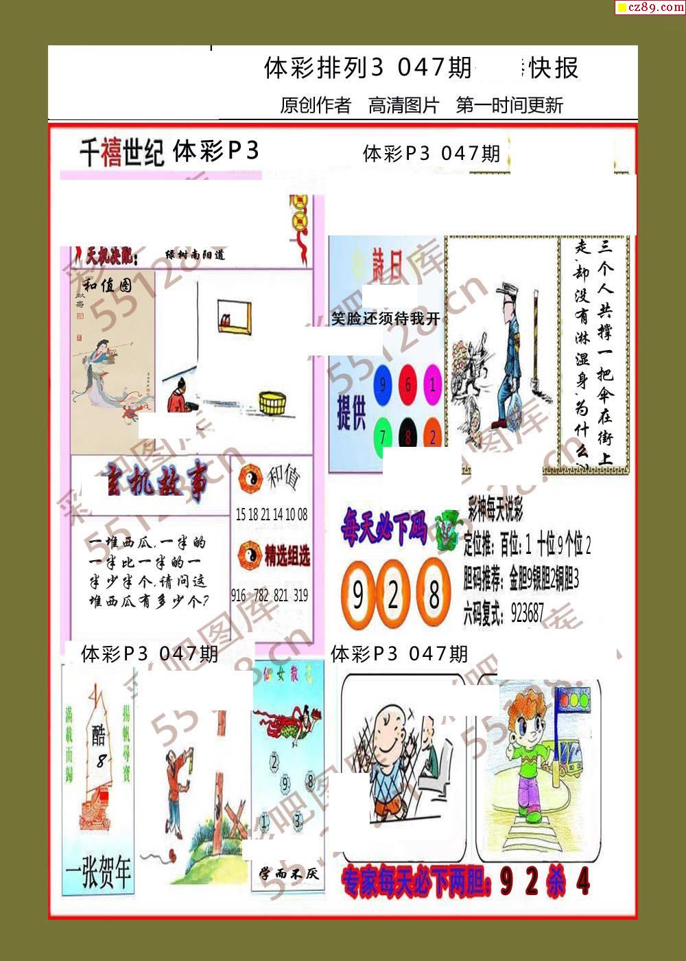 香岛快报047期体彩p3图谜