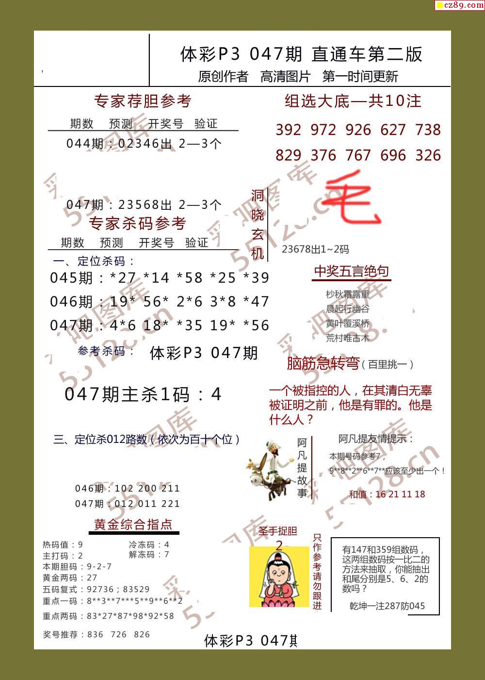 2026年047期牛彩网体彩P3画迷图谜汇总分享