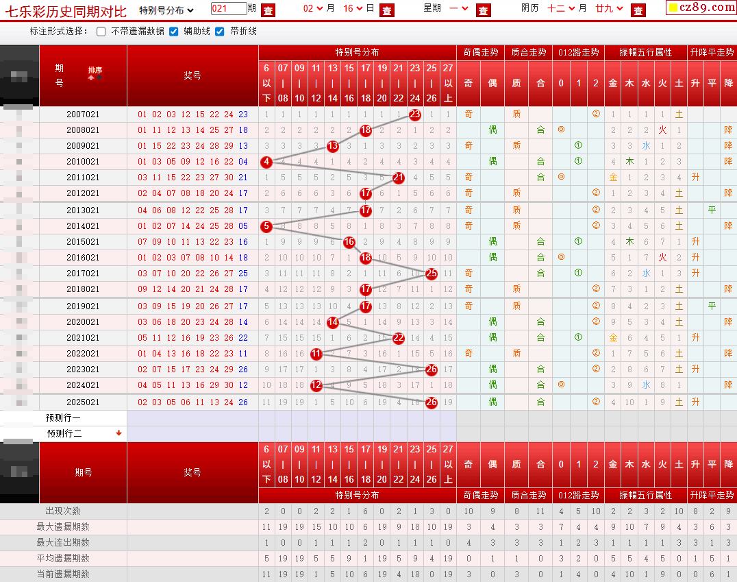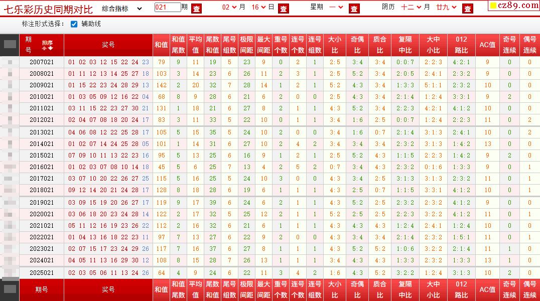 021期七乐彩历史同期对比图