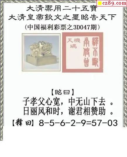 晚秋和值谜2026047期3d图谜